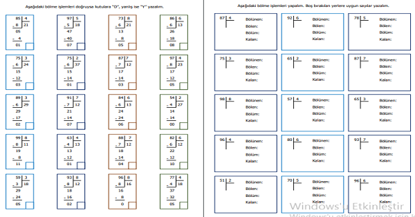 3.Sınıf Matematik Doğal Sayılarla Bölme İşlemi Etkinliği 7