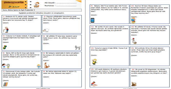 3.Sınıf Matematik Bölme İşlemi ile İlgili Problemler 3