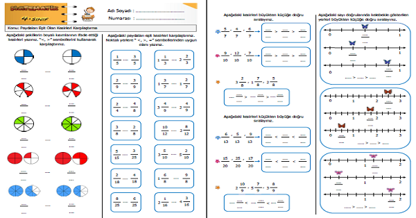 4.Sınıf Matematik Paydaları Eşit Olan Kesirleri Karşılaştırma Etkinliği 3