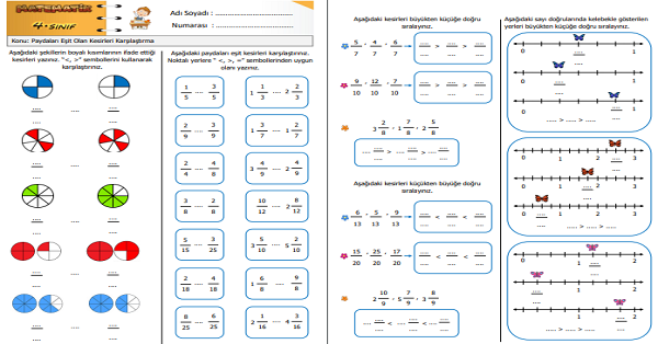 4.Sınıf Matematik Paydaları Eşit Olan Kesirleri Karşılaştırma Etkinliği