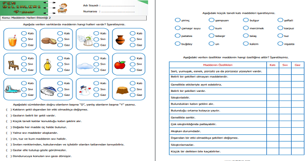 4.Sınıf Fen Bilimleri Maddenin Halleri Etkinliği 2
