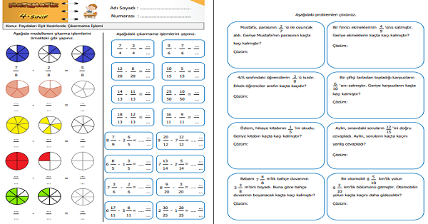 4.Sınıf Matematik Paydaları Eşit Kesirlerde Çıkarma İşlemi Etkinliği