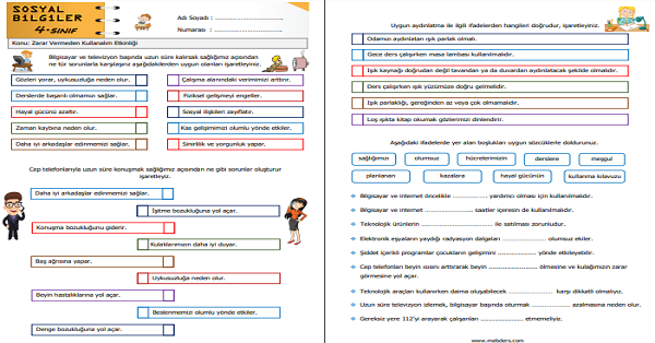 4.Sınıf Sosyal Bilgiler Zarar Vermeden Kullanalım Etkinliği