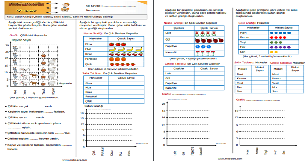 4.Sınıf Matematik Verilerin Farklı Gösterimleri (Çetele Tablosu, Sıklık Tablosu, Nesne ve Şekil Grafiği) Etkinliği 5