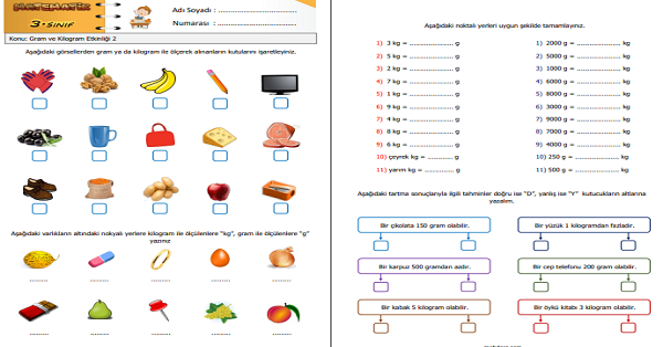 3.Sınıf Matematik Gram ve Kilogram (Tartma) Etkinliği 2