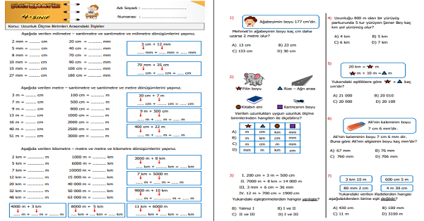 4.Sınıf Matematik Uzunlukları Ölçme (Uzunluk Ölçme Birimleri Arasındaki İlişkiler) 3