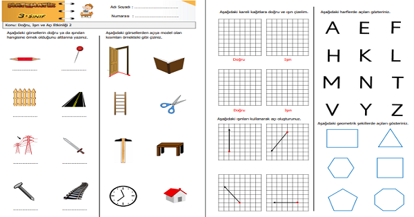 3.Sınıf Matematik Doğru, Işın ve Açı Etkinliği 2