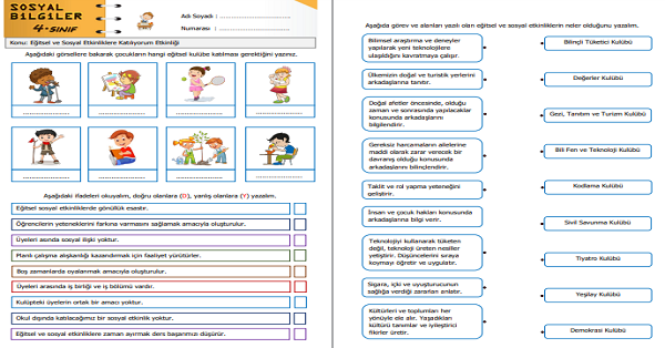 4.Sınıf Sosyal Bilgiler Eğitsel ve Sosyal Etkinliklere Katılıyorum Etkinliği