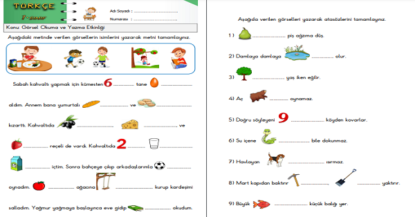 1.Sınıf Türkçe Görsel Okuma ve Yazma Etkinliği 3