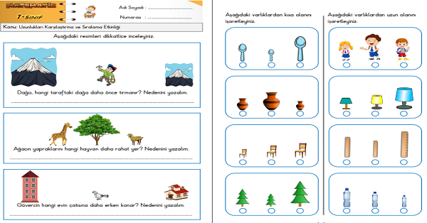1.Sınıf Matematik Uzunlukları Karşılaştırma ve Sıralama Etkinliği 3