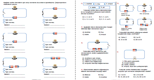 4.Sınıf Fen Bilimleri Basit Elektrik Devreleri Etkinliği 2