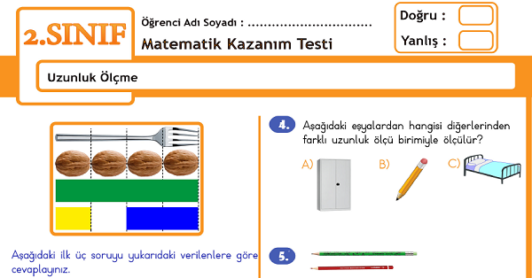 2.Sınıf Matematik Uzunluk Ölçme Kazanım Testi